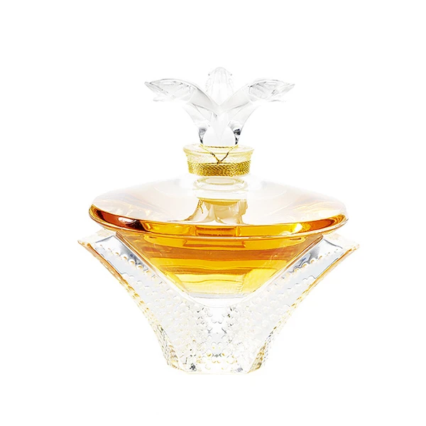 Oggi, l’edizione femminile del flacone Lalique ha adottato il motivo del pesce della fontana: Cascade. Realizzato in cristallo trasparente, questo flacone a forma di lavabo si erge su un piedistallo geometrico adornato da goccioline e bollicine scolpite dall’interno nel vetro. Il tappo smerigliato rende omaggio alla decorazione della fontana. Uno, due, tre pesci sguazzano: una trilogia acquatica impressionante.