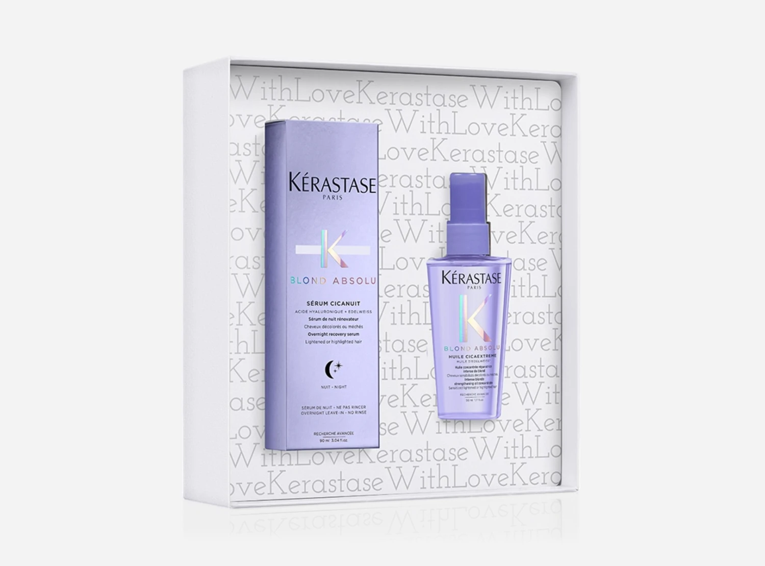 set kerastase with love blond absolu con siero notturno e olio rinforzante per capelli biondi