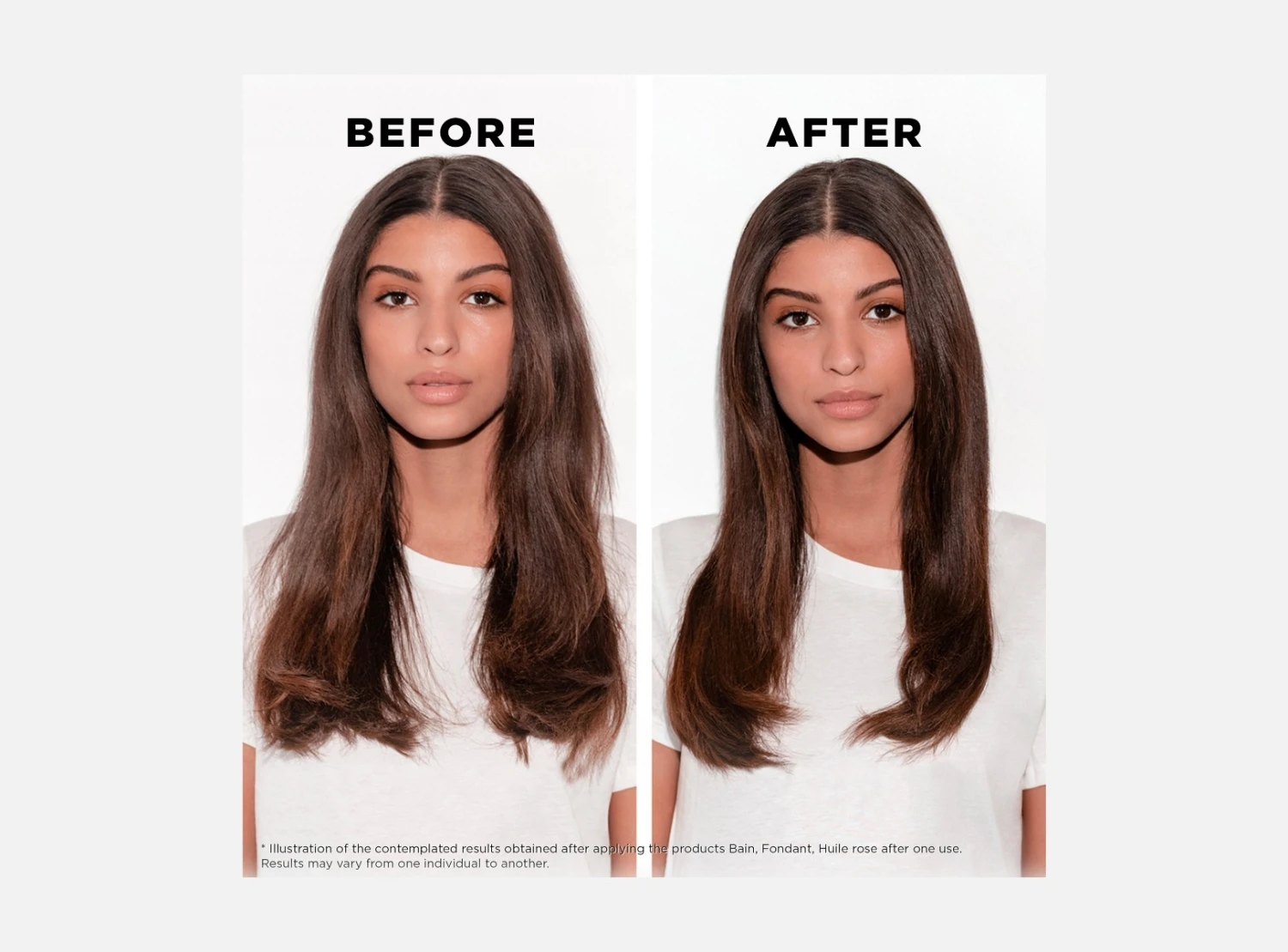 • Finitura: lavorare sulle punte dei capelli alcune gocce d’olio per rimuovere l’effetto crespo, lisciare e modellare l’acconciatura