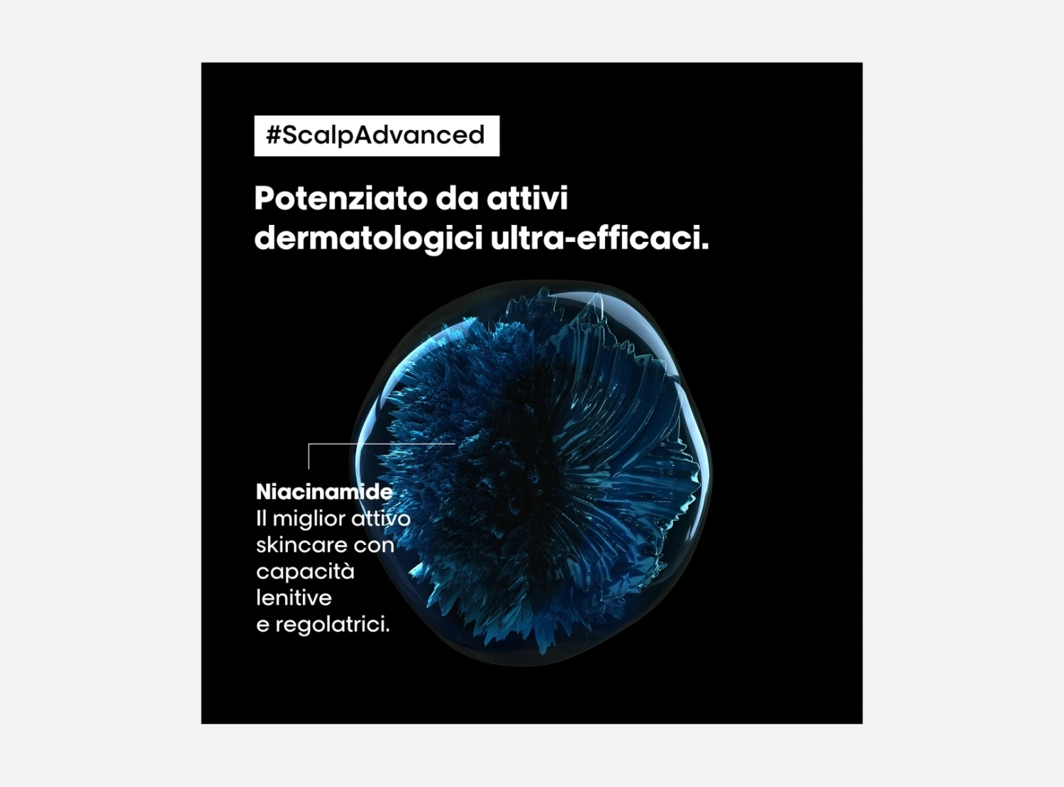 Il trattamento lenitivo Scalp Advanced per cute sensibile ha una formulazione a base di Niacinamide, una vitamina del gruppo B3 dalle proprietà lenitive e regolatrici, per fornire una risposta professionale alle esigenze di tutti i tipi di cute, soprattutto a chi ha un cuoio capelluto sensibile, pruriginoso e arrossato.