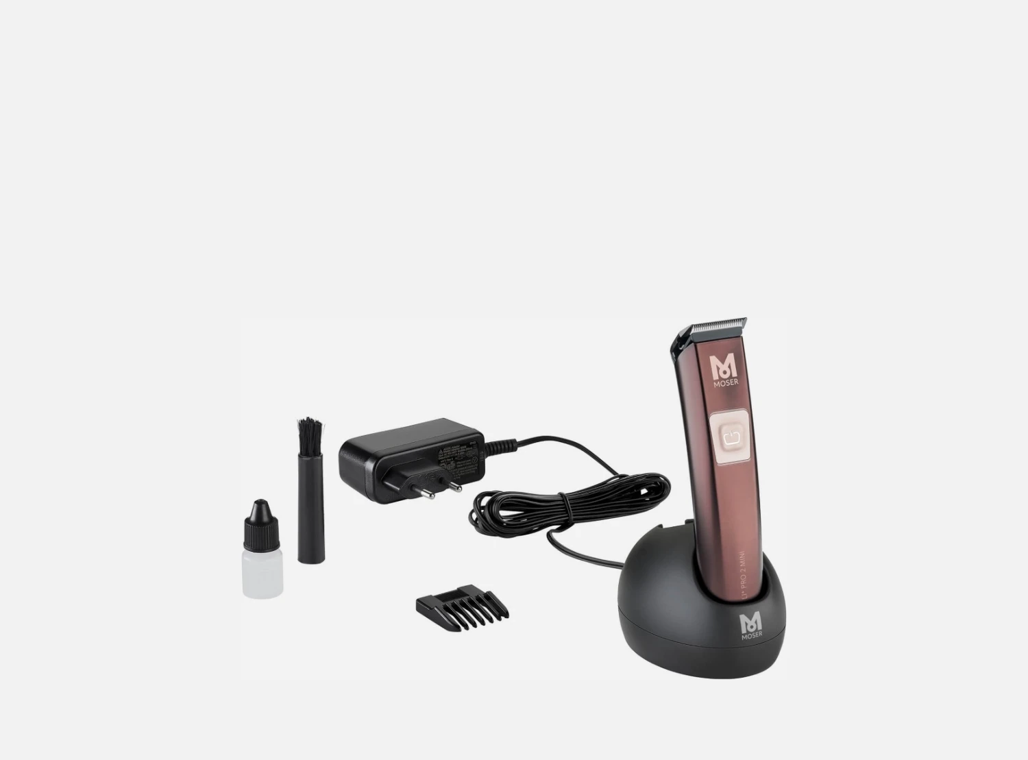 | Contenuto Confezione | • Moser LI+PRO² Mini 1588-0051 trimmer professionale • Base di ricarica • Trasformatore a spina a basso consumo energetico • Spazzolino • Olio • 1 rialzo Vario da 3 – 6 mm, base di ricarica |