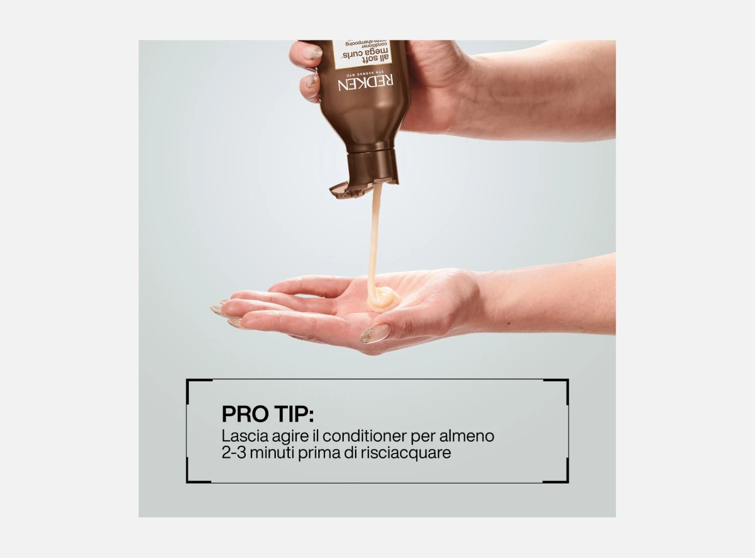 1 Applicare una piccola quantità di conditioner Redken All Soft Mega Curls su lunghezze e punte